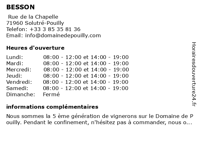| Mercredi | 08:00-12:00 et 14:00-19:00 |