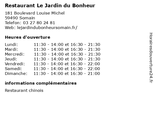 Termes de recherche pour Restaurant Le Jardin du Bonheur:restauration, restaurant, du, café, le, jardin, bistrot, brasserie, bonheur |