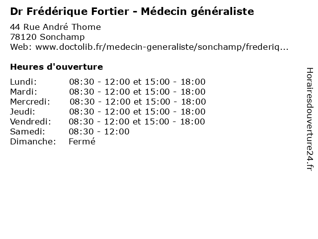 | Lundi | 08:30-12:00 et 15:00-18:00 |