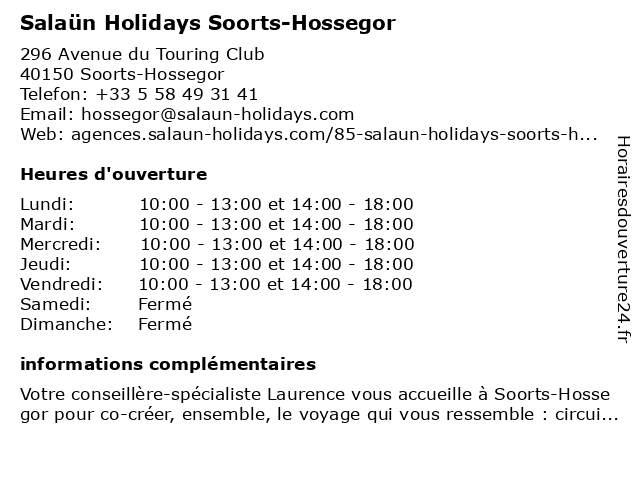 | Lundi | 10:00-13:00 et 14:00-18:00 |