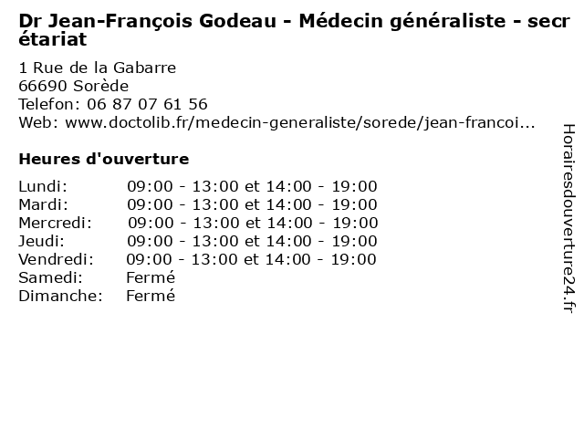 | Lundi | 09:00-13:00 et 14:00-19:00 |