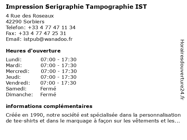 | Lundi | 07:00-17:30 |