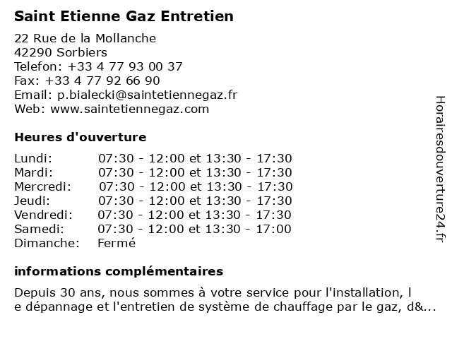 | Samedi | 07:30-12:00 et 13:30-17:00 |