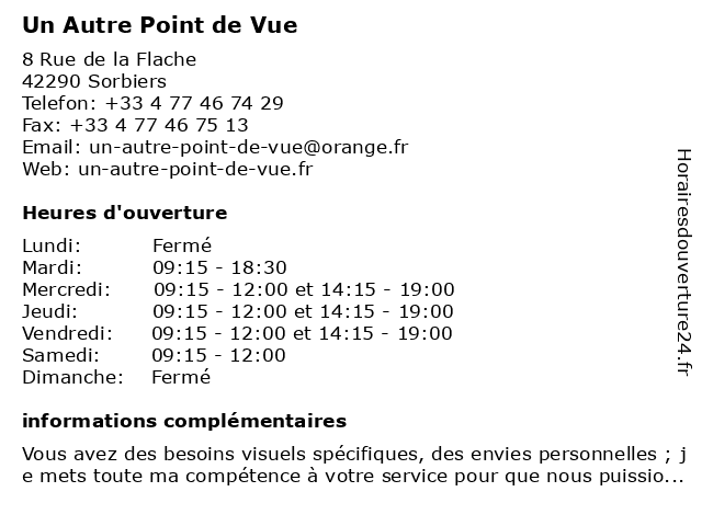 | Lundi | Fermé |
