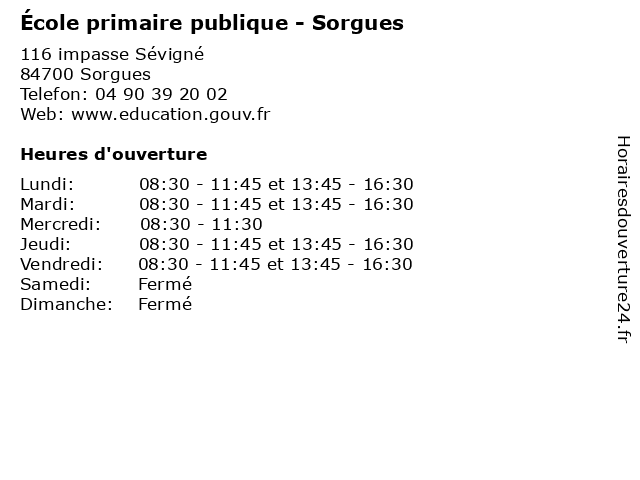 | Mardi | 08:30-11:45 et 13:45-16:30 |