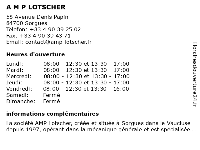 Images pour l'entreprise A M P LOTSCHER à Sorgues