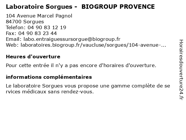 Appeler Laboratoire Sorgues - BIOGROUP PROVENCE | |