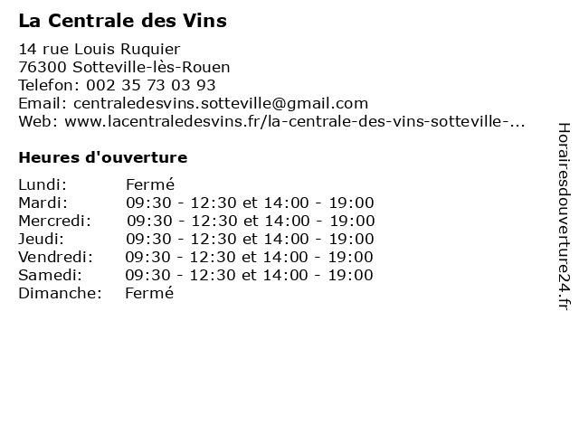 | Samedi | 09:30-12:30 et 14:00-19:00 |