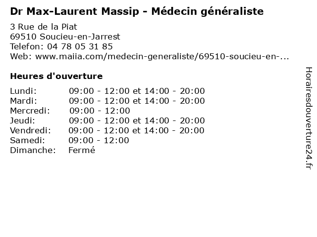 | Lundi | 09:00-12:00 et 14:00-20:00 |