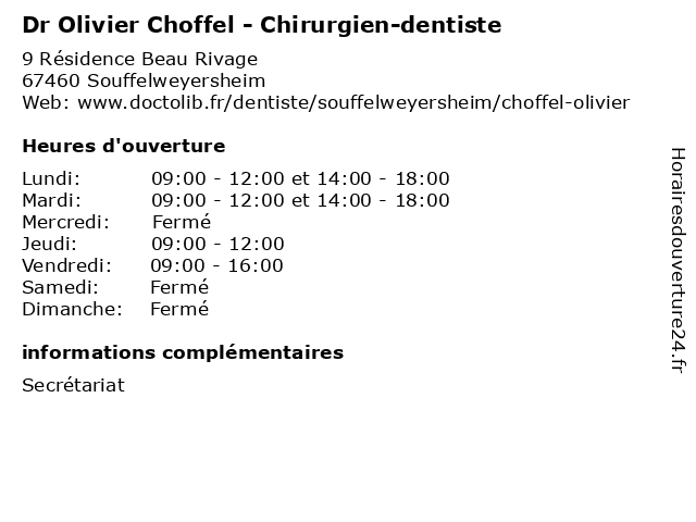 | Lundi | 09:00-12:00 et 14:00-18:00 |