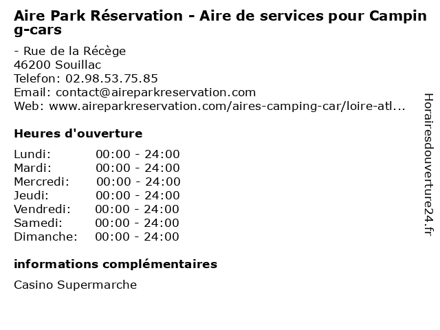 1 Aire Park Réservation - Aire de services pour Camping-cars (Distance: 3,63 km) - Route départementale D703, 24200 Carsac-Aillac aire, arrêt, camping, camping car, cars, de, park, pour, repos, réservation, services, trajet, transports 2 Aire Municipale et Euro-Relais (Borne campings-car) (Distance: 0,50 km) - Place du Baillot, 46200 Souillac aire, borne, camping, campings, car, eau, et, euro, municipale, relais, stationnement, tourisme, vidange 3 Camping Les Ondines - Basse saison (Distance: 0,64 km) - Rue Des Ondines, 46200 Souillac basse, camping, caravaning, les, loisirs, ondines, réception, saison, tourisme, vacances 4 Aire Euro-Relais (Borne campings-car) (Distance: 0,68 km) - Rue des Ondines, 46200 Souillac aire, borne, camping, campings, car, eau, euro, municipale, relais, stationnement, tourisme, vidange 5 Camping La Perigourdine (Distance: 5,52 km) - Peyrillac, 24370 Peyrillac-et-Millac camping, la, loisirs, perigourdine, tourisme, vacances 6 Camping Le Pic (Distance: 6,39 km) - Le Pic, 46200 Mayrac camping, caravaning, le, loisirs, pic, tourisme, vacances |
