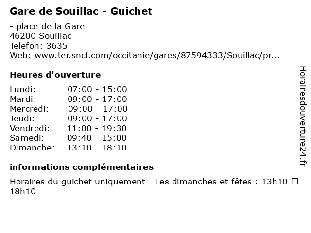 Termes de recherche pour Gare de Souillac - Guichet:en, de, souillac, gare, sncf, transports, train, tgv, guichet, ter, commun, ferroviaire |