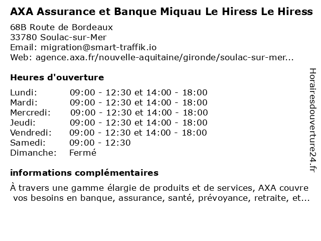 | Lundi | 09:00-12:30 et 14:00-18:00 |