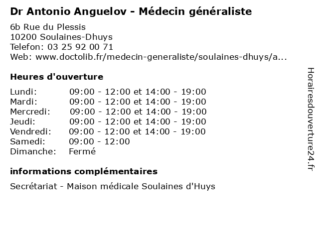 | Mardi | 09:00-12:00 et 14:00-19:00 |