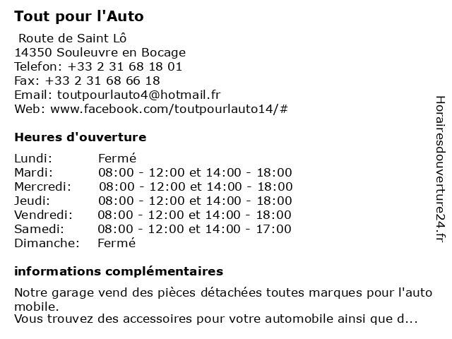 | Mardi | 08:00-12:00 et 14:00-18:00 |
