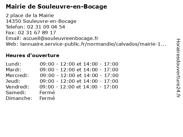 Termes de recherche pour Mairie de Souleuvre-en-Bocage:en, de, bocage, administration, mairie, assoc public, reux, souleuvre |