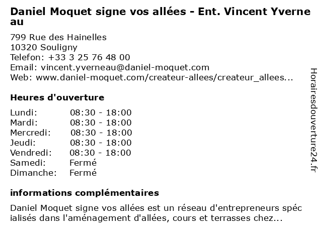 1 Ent. Les Allées Auboises (Distance: 0,00 km) 799 Rue des Hainelles, 10320 Souligny allées, auboises, ent., les 2 Daniel Moquet signe vos jardins - Ent. Mongin - Bernard (Distance: 0,00 km) 799 Rue des Hainelles, 10320 Souligny bernard, création, crédit d'impôt, daniel, daniel moquet jardins, daniel moquet paysagiste, débroussaillage, désherbage, engazonnement, ent., entreprise entretien jardin, entretien, espaces verts, gazon de placage, jardinier, jardins, massif paysager, mongin, moquet, nettoyage, paysagiste, paysagiste jardin, signe, taille, taille de haies, tonte de pelouse, vos 3 Daniel Moquet signe vos clôtures - Ent. Caritte (Distance: 0,03 km) 799 Rue des Hainelles, 10320 Souligny caritte, carport, clôture, clôture aluminium, clôture bois, clôture composite, clôtures, daniel, daniel moquet clôtures, ent., grillage rigide, moquet, pergola, pergola bioclimatique, portail, portail aluminium, portail battant, portail coulissant, portail pvc, portillon, poseur de clôtures, poseur de menuiseries extérieures, poseur de pergola, poseur de portail, signe, store banne, vos 4 Daniel Moquet signe vos clôtures - Ent. Morelli (Distance: 0,04 km) 793 Rue des Hainelles, 10320 Souligny aménagement extérieur, carport, clôtures, daniel, ent., moquet, morelli, pergola, portail, protéger, signe, sécuriser, terrasse, vos 5 Les Allées Jules Guesde / Jean Macé à Troyes (Distance: 9,96 km) . Place Jean Macé, 10000 Troyes allées, frutas, guesde, hortalizas, jean, jules, les, macé, mercado, troyes, verduras 6 Dr. Massia Menkene Daniel - Urologie (Distance: 11,27 km) 4 Rue Chaim Soutine, 10000 Troyes daniel, docteur, dr., massia, medecins, menkene, sante, urologie |
