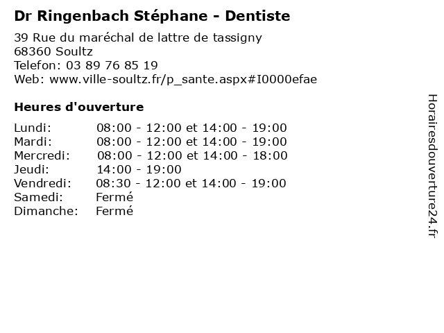 | Lundi | 08:00-12:00 et 14:00-19:00 |