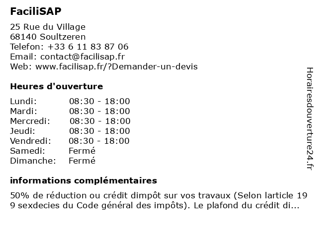| Lundi | 08:30-18:00 |