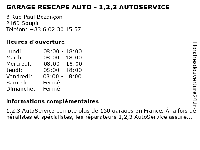 Termes de recherche pour GARAGE RESCAPE AUTO - 1,2,3 AUTOSERVICE:garage, auto, autoservice, rescape |
