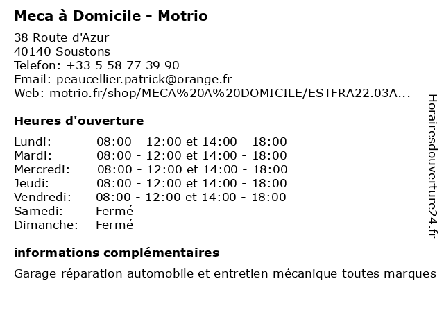 Termes de recherche pour Meca à Domicile - Motrio:domicile, motrio, meca, garage automobile, garage multimarque, pneus motrio, garage motrio soustons, garage soustons, garage auto à proximité, garage motrio à proximité, garage à proximité, promo motrio, rendez-vous garage |