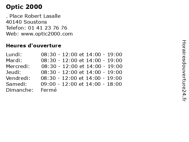 | Lundi | 08:30-12:00 et 14:00-19:00 |