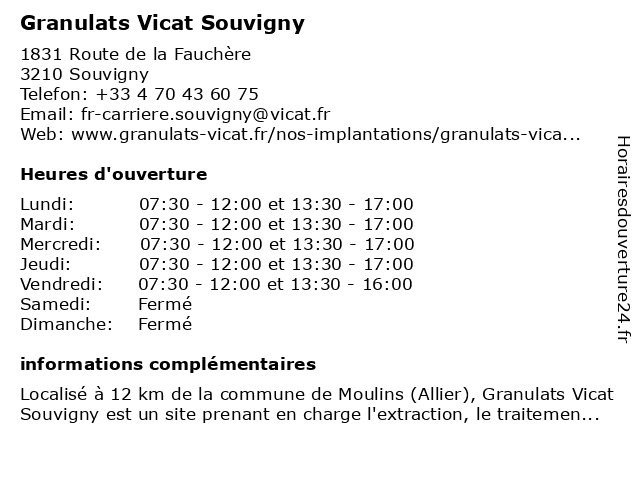2 Granulats Vicat Moulins (Distance: 10,17 km) 106 Route de Montilly, 03000 Moulins granulats, moulins, vicat 5 Granulats Vicat Lurcy-Lévis (Distance: 31,68 km) Le Pont de l'Étau, 03320 Lurcy-Lévis granulats, lurcy, lévis, vicat 6 Béton VICAT - DOMPIERRE (Distance: 38,28 km) Rue de l'Écluse, 03290 Dompierre-sur-Besbre béton, dompierre, vicat |