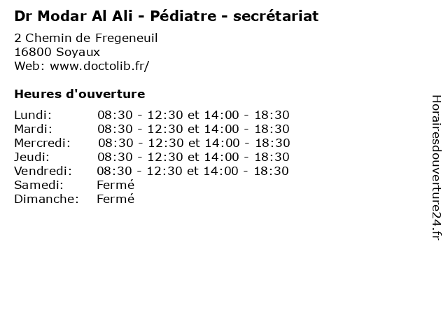 | Mardi | 08:30-12:30 et 14:00-18:30 |