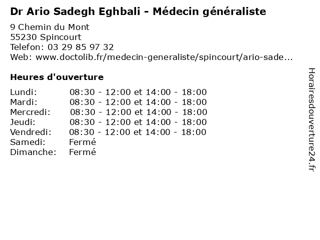 | Lundi | 08:30-12:00 et 14:00-18:00 |
