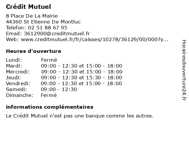 | Mardi | 09:00-12:30 et 15:00-18:00 |