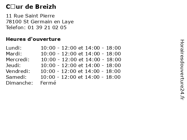 Samedi | 10:00-12:00 et 14:00-18:00 |