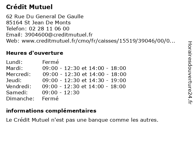 | Mardi | 09:00-12:30 et 14:00-18:00 |