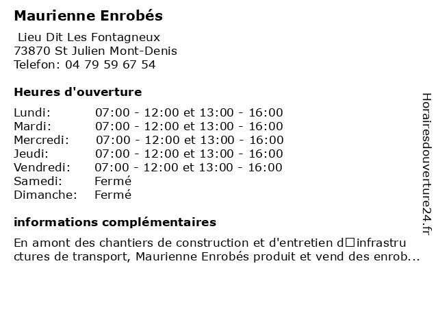 | Vendredi | 07:00-12:00 et 13:00-16:00 |