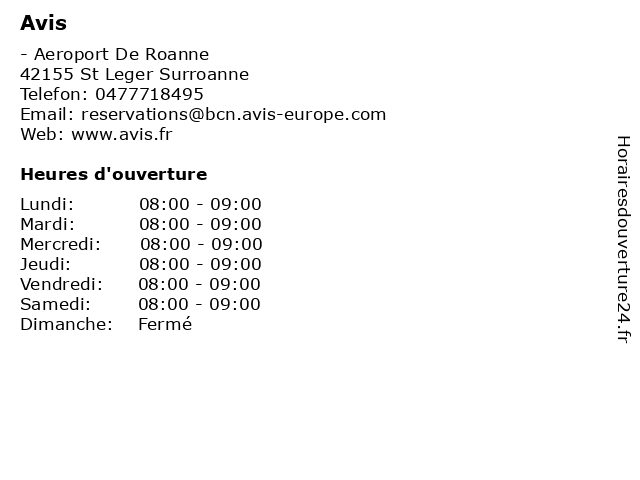 | Dimanche | Fermé |