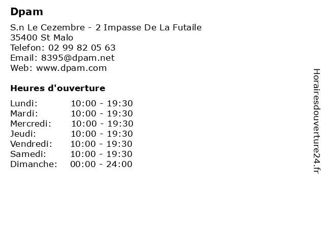 1 Dpam (Distance: 3,73 km) 10 Rue De Dinan, 35400 St Malo affaires, boutique, dpam, produit, service, vêtements 2 Vêt'Affaires (Distance: 0,13 km) 20 Rue de La Grassinais, 35400 Saint Malo bebe, chaussures, femme, homme, mode, vêt'affaires 3 4 Bretagne Materiaux (Distance: 1,70 km) 13 Rue de la Guymauvière, 35400 Saint Malo bretagne, bâtimen, materiaux, matériaux, produit.agences 5 Breizh Bien Etre (Distance: 2,04 km) 1 Avenue du Général Ferrié, 35400 Saint-Malo bien, bio, breizh, etre, magasin, producteur, produit 6 Lidl (Distance: 2,61 km) 22 rue d'Alsace, 35400 Saint Malo bonnes affaires, discount, fruits et légumes, lidl, magasins de la chaîne européens, malo, moins cher, plantes et fleurs, saint, super saturday, supermarché |