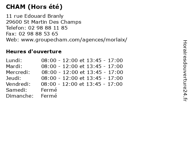 | Mardi | 08:00-12:00 et 13:45-17:00 |
