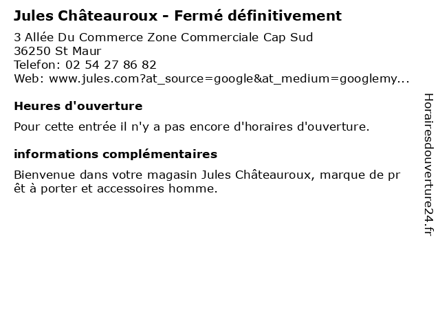 | Appeler Jules Châteauroux - Fermé définitivement | |