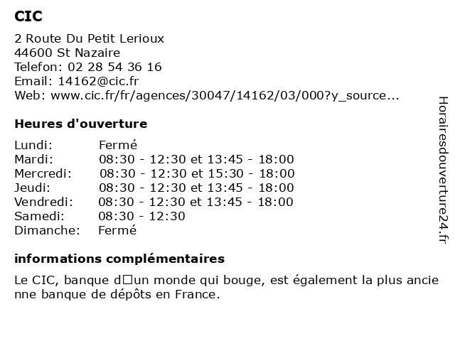 | Mardi | 08:30-12:30 et 13:45-18:00 |