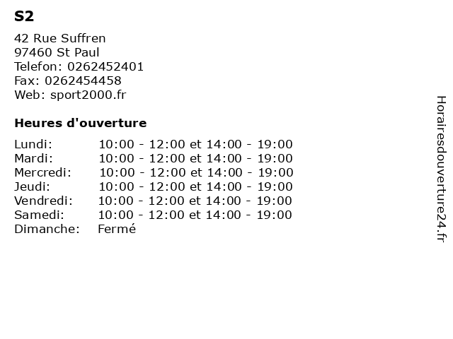| Samedi | 10:00-12:00 et 14:00-19:00 |