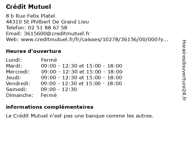 | Mardi | 09:00-12:30 et 15:00-18:00 |