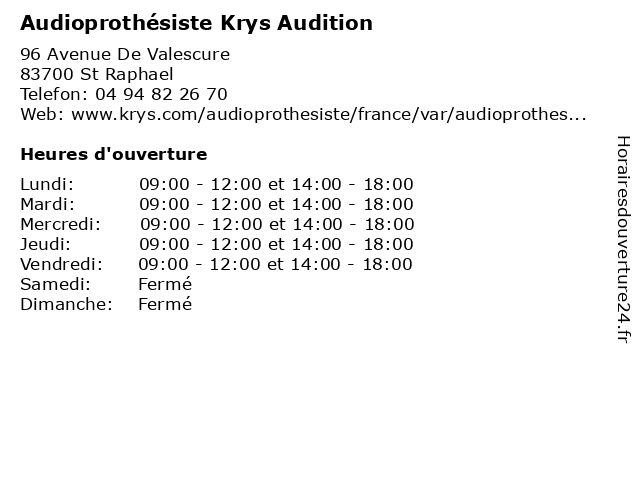 1 Audioprothésiste St Raphael - Valescure - Krys Audition (Distance: 0,00 km) 96 Avenue de Valescure, 83700 Saint-Raphaël audioprothésiste, audition, krys, raphael, st, valescure 2 Audioprothésiste Audition Mutualiste Saint-Raphaël (Distance: 0,06 km) 133 Avenue de Valescure, 83700 Saint-Raphaël audioprothésiste, audition, mutualiste, raphaël, saint 3 Audition Conseil (Distance: 0,36 km) 112 Place Pierre Coullet, 83700 Saint Raphael aide auditive, audition, conseil, santé, spécialiste 4 Audition Confort (Distance: 0,93 km) 194 Rue de la République, 83600 Frejus auditif, audition, centre, confort, sante 5 6 Audition Confort (Distance: 5,93 km) 1129 Avenue de la Corniche d'Azur, 83370 Saint-Aygulf auditif, audition, centre, confort, sante |