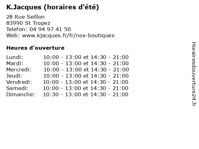 Termes de recherche pour K.Jacques (horaires d'été):horaires, mode, createur, d'été, artisan, k.jacques |