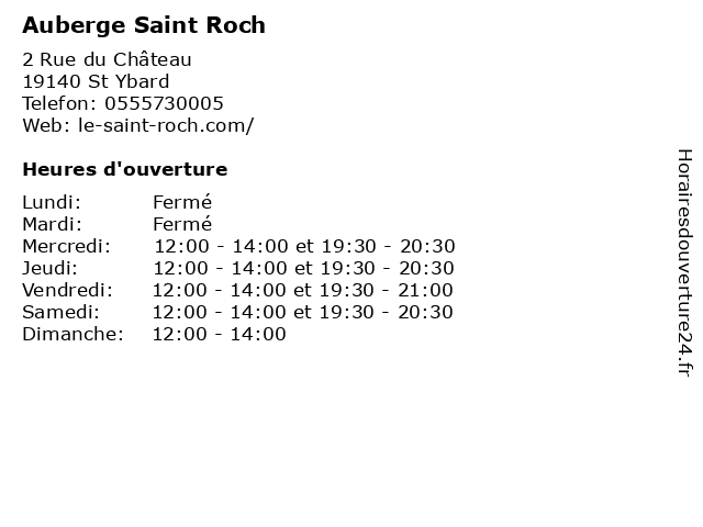 | Lundi | Fermé |