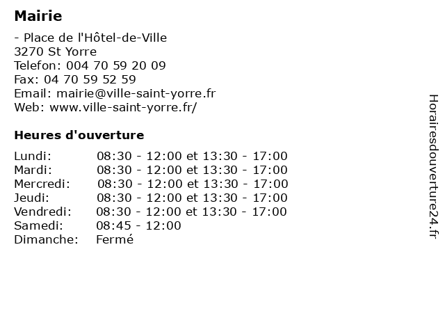 | Lundi | 08:30-12:00 et 13:30-17:00 |