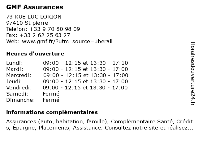 1 GMF Assurance (Distance: 0,01 km) 73 Rue Luc Lorion, 97410 Saint-Pierre agence, agent, assurance, auto, gmf, habitation, prévoyance, santé 2 Allianz - 3A Assurances (Distance: 0,20 km) 81 B Rue Luc Lorion Casabona, 97410 Saint Pierre 3a, allianz, assurance, assurances, auto, habitation, moto, vie 3 Réunion Assurances (Distance: 0,36 km) 146 Rue Marius et Ary Leblond, 97410 Saint-Pierre assurance, assurances, auto, habitation, prévoyance, réunion, santé, sécurité 4 ANSET Assurances (Distance: 0,37 km) 49 Rue Luc Lorion, 97410 Saint Pierre agence, anset, assurance, assurances, conseils, courtier, protections 5 AXA Assurance - Etablissement Legros Assurances (Distance: 1,33 km) - Rue de la Poudrière, 97410 Saint-Pierre assurance, assurances, axa, etablissement, habitation, legros, mutuelle 6 Allianz 3A Assurances Agents Généraux (Distance: 7,75 km) 184 bis avenue Doct Raymond Vergès Local 2, 97450 Saint louis 3a, agents, allianz, assurances, généraux |