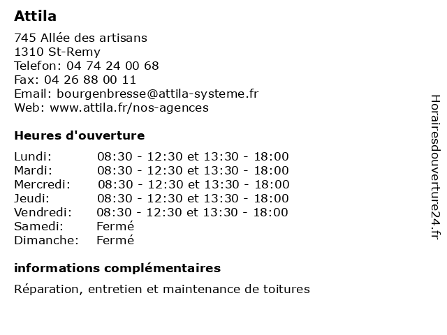Lundi | 08:30-12:30 et 13:30-18:00 |