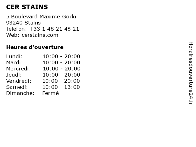 | Mercredi | 10:00-20:00 |
