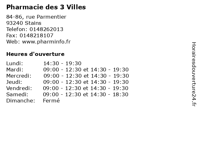| Samedi | 09:00-12:30 et 14:30-18:30 |
