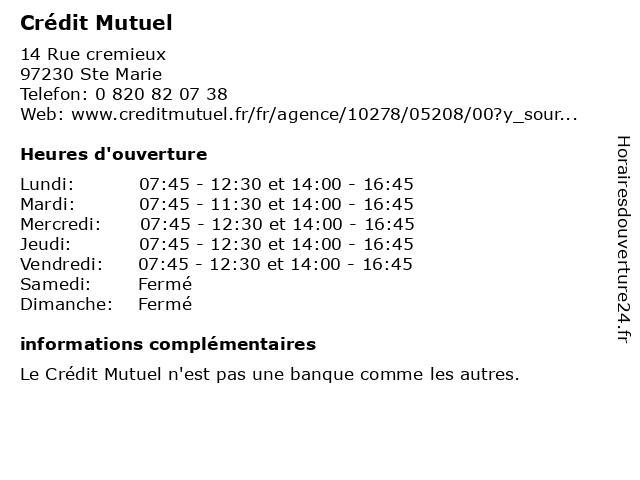 1 Crédit Mutuel (Distance: 0,02 km) 14 Rue Cremieux, 97230 Sainte-Marie agence, assurance, bancaire, banque, crédit, mutuel 2 Crédit Mutuel (Distance: 13,10 km) 1 Boulevard Henri Auze, 97231 Le Robert agence, assurance, bancaire, banque, crédit, mutuel 3 Crédit Mutuel (Distance: 15,46 km) - Avenue Edgard Nestoret, 97260 Le Morne Rouge agence, assurance, bancaire, banque, crédit, mutuel 4 Crédit Mutuel (Distance: 15,80 km) Avenue edgard nestoret, 97260 Le Morne Rouge compagnie de téléphone, crédit, mutuel, organisme d'assurance 5 Crédit Mutuel (Distance: 18,35 km) 98 Avenue georges gratiant, 97232 Le Lamentin compagnie de téléphone, crédit, mutuel, organisme d'assurance 6 Crédit Mutuel (Distance: 18,35 km) 98 Place d'Armes, 97232 Le Lamentin agence, assurance, bancaire, banque, crédit, mutuel |