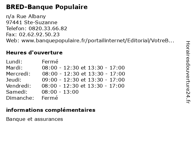1 BRED-Banque Populaire (Distance: 14,41 km) n/a rue Jean Paul II, 97400 St-Denis de la Réunion banque, bred, populaire 2 Banque Populaire (Distance: 7,65 km) 1 Rue des Arts, 97440 Saint-André-de-la-Réunion agence, assurance, bancaire, banque, populaire 3 Banque Populaire (Distance: 11,23 km) 10 avenue de l'Amitié, 97490 Sainte-Clotilde agence, assurance, bancaire, banque, populaire 4 Banque Populaire (Distance: 12,05 km) 7880 Bis place Michel Debré, 97412 Bras-Panon agence, assurance, bancaire, banque, populaire 5 Banque Populaire (Distance: 12,78 km) 16 rue Bridet, 97490 Sainte-Clotilde agence, assurance, bancaire, banque, populaire 6 Banque Populaire (Distance: 15,75 km) 33 boulevard de la Providence, 97400 Saint-Denis-de-la-Réunion agence, assurance, bancaire, banque, populaire |